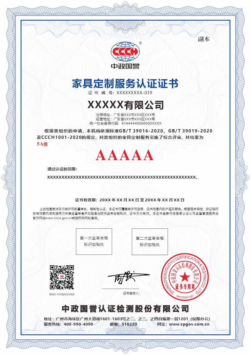 通过对这些“设计特性”、“制造特性”与“服务特性”的综合评定,认证机构将为企业颁发相应等级的认证证书。这不仅是企业服务能力与质量管控体系符合高标准要求的证明,更是其在家具定制领域专业度与成熟度的权威标志。