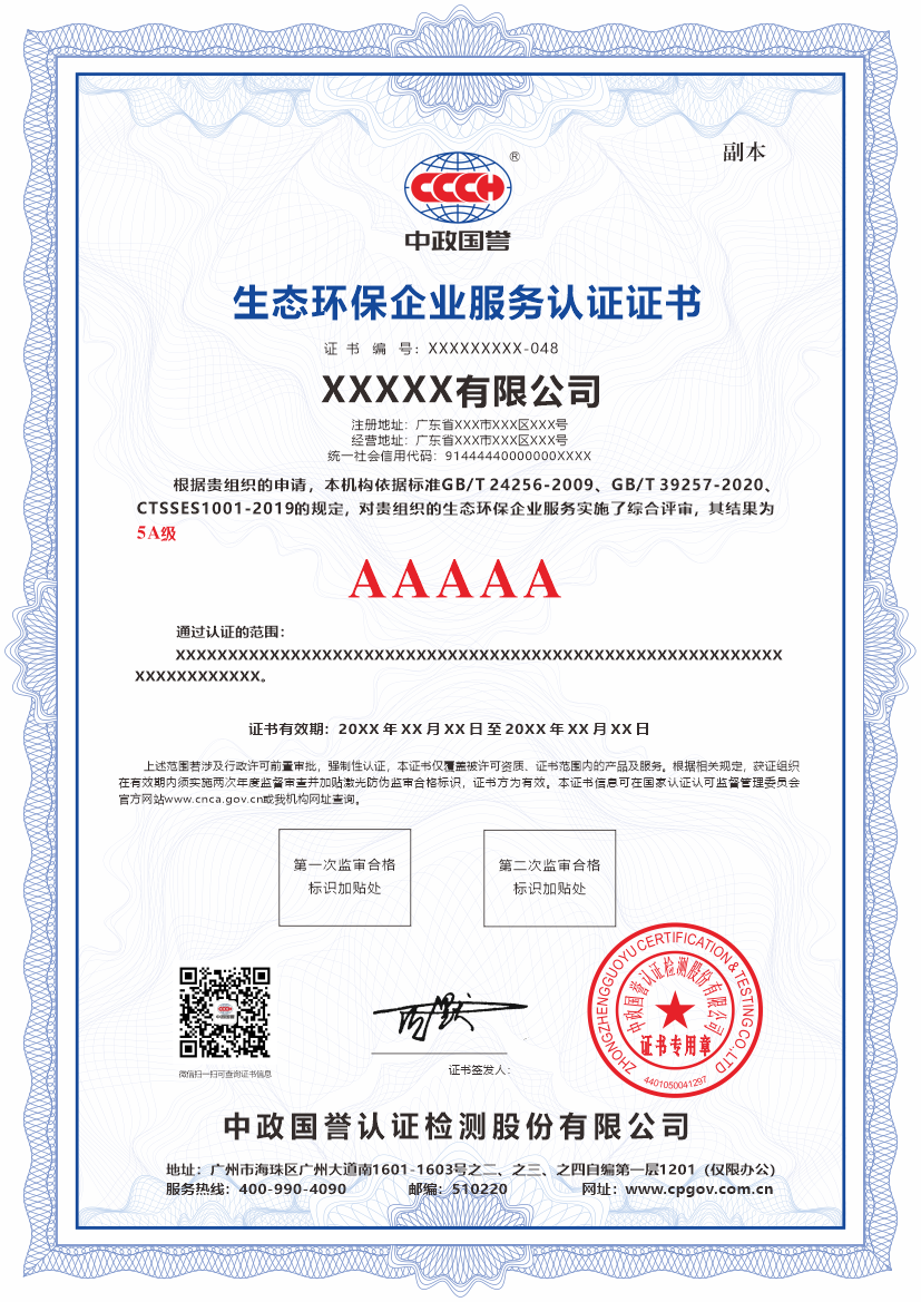 3、在全球绿色低碳转型和国内“双碳”目标的大背景下,环保表现已成为政府绿色采购、重大项目招标、银行贷款评估、供应链准入以及国际贸易(如应对碳关税)中的关键考量因素。持有权威的生态环保服务认证证书,能够作为客观、可信的“绿色通行证”,为企业赢得政策支持、市场准入和商业合作机会,在绿色经济浪潮中构建核心竞争优势。