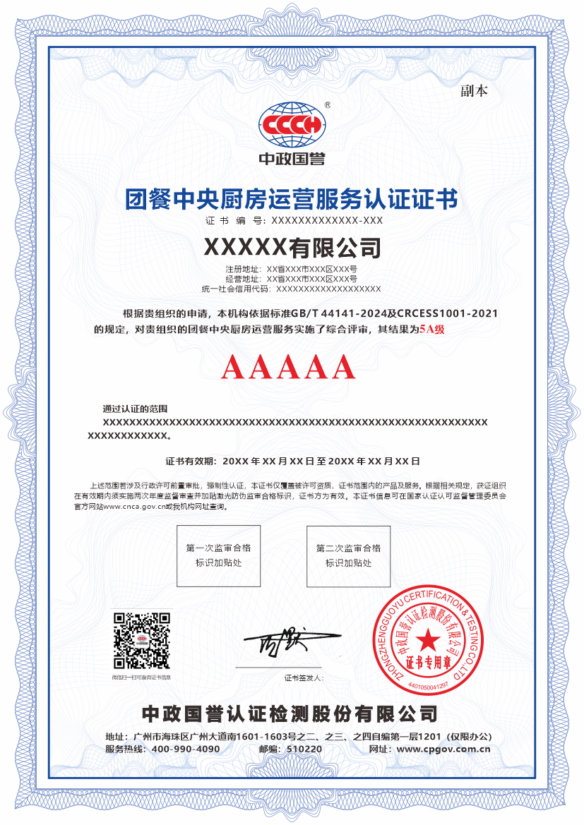 通过对这些“食品安全特性”、“运营管理特性”与“服务保障特性”的综合评定,认证机构将为企业颁发相应等级的认证证书。这不仅是企业合规运营的证明,更是其规模化供餐服务在安全、质量与稳定性方面达到高成熟度的重要标志。