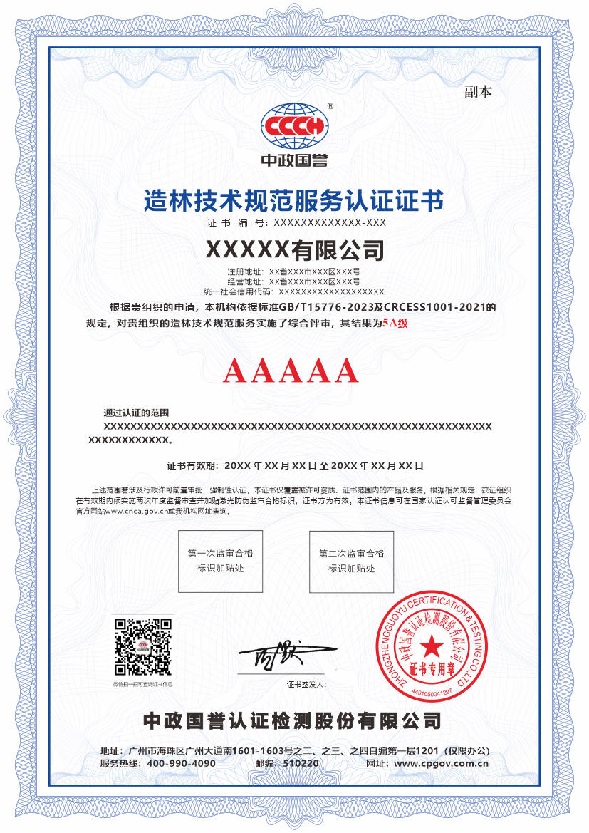 通过对这些“技术规范性”与“管理符合性”的综合评定,认证机构将为申请方颁发相应等级的认证证书。这不仅是其造林作业符合国家技术标准的证明,更是申请方专业技术能力与项目管理成熟度的重要标志。