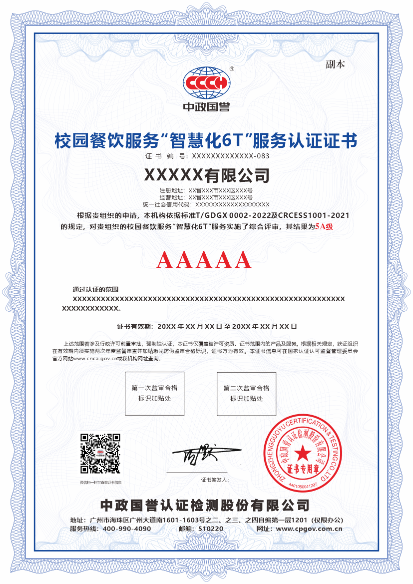 通过对这些“管理流程”、“技术应用”与“服务实效”的综合评定,认证机构将向符合要求的单位颁发相应等级的认证证书。这不仅是其餐饮服务管理达到先进水平的权威证明,更是其持续践行“智慧管理、营养健康、安全放心”服务承诺的标志。