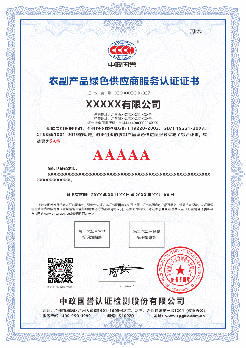 通过对这些“环境属性”、“质量属性”与“管理服务属性”的综合评定,认证机构将为通过评估的供应商颁发相应等级的认证证书。这不仅是其产品绿色属性的有力证明,更是该供应商在可持续农业与负责任供应链领域管理成熟度的重要标志。