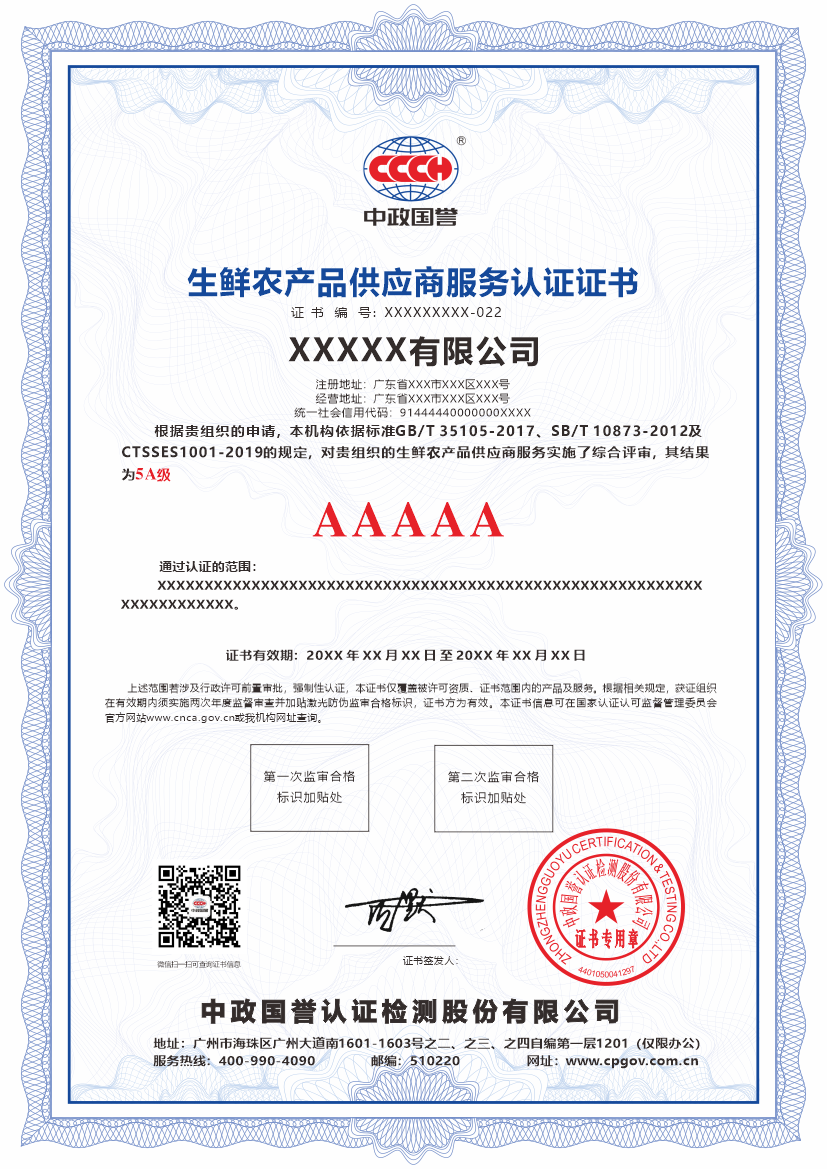 2、获得权威的生鲜农产品服务认证,是对外展示企业“品质为先、安全至上”经营理念的庄严承诺。它有力地向消费者、采购商、合作伙伴及监管机构传递了企业履行食品安全主体责任、追求卓越品质的决心,显著增强企业的品牌美誉度、市场公信力和消费者忠诚度。