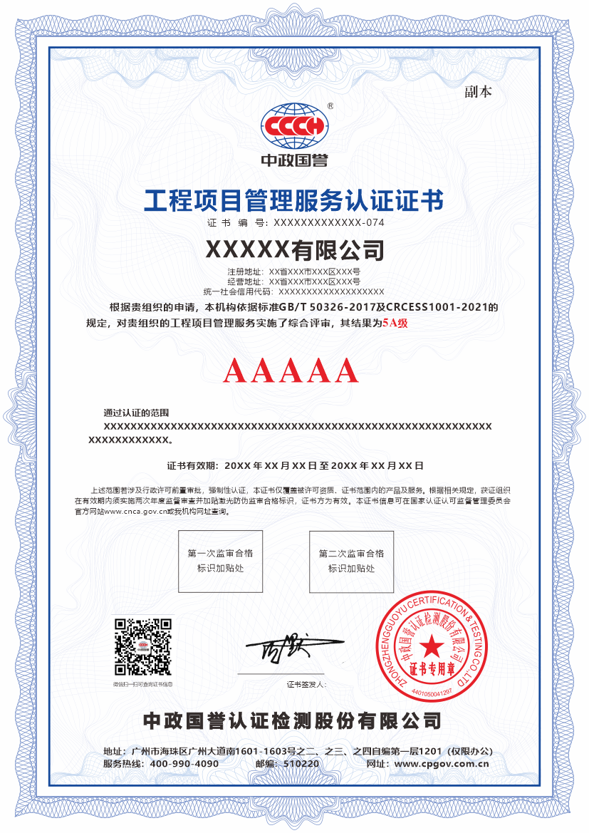 通过对企业“体系规范性”、“人才专业性”、“过程控制有效性”与“成果绩效卓越性”的综合评定,认证机构将为企业颁发相应等级的认证证书。这不仅是企业项目管理服务能力合规性与成熟度的权威证明,更是其专业化水平、核心竞争力和品牌公信力的重要标志。